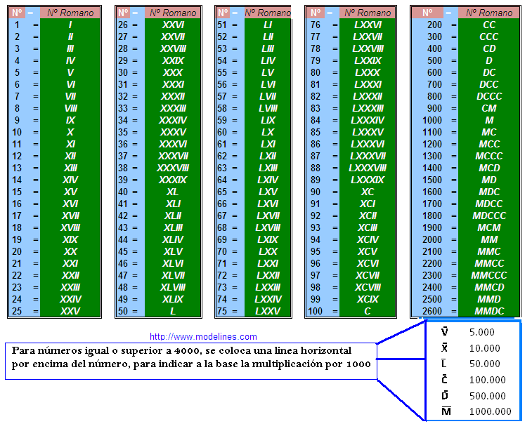Números Romanos Completos del 1 al 1000 » Sistéma de Numeración Romana Todo imágenes