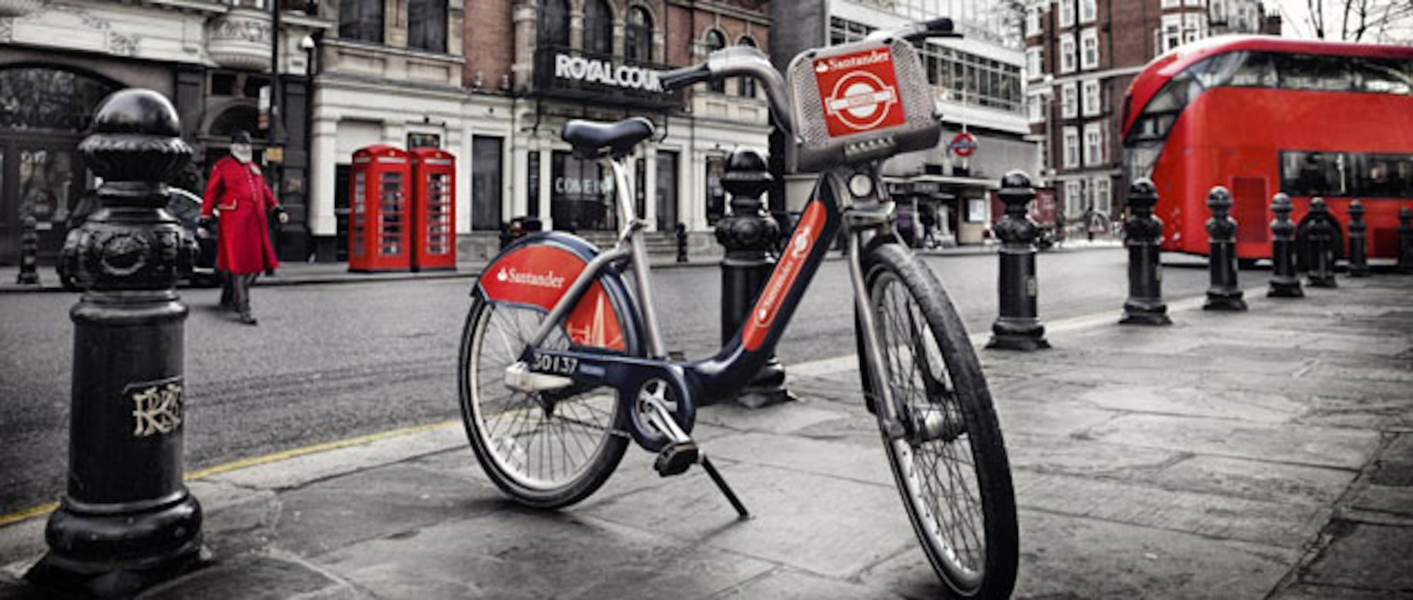 Santander Cycles es el nombre del programa público de alquiler de bicicletas pensado para los desplazamientos cortos por el centro de Londres. Incluye tanto bicicletas normales como eléctricas. La "red" se compone de 800 estaciones y más de 12.000 bicicletas.