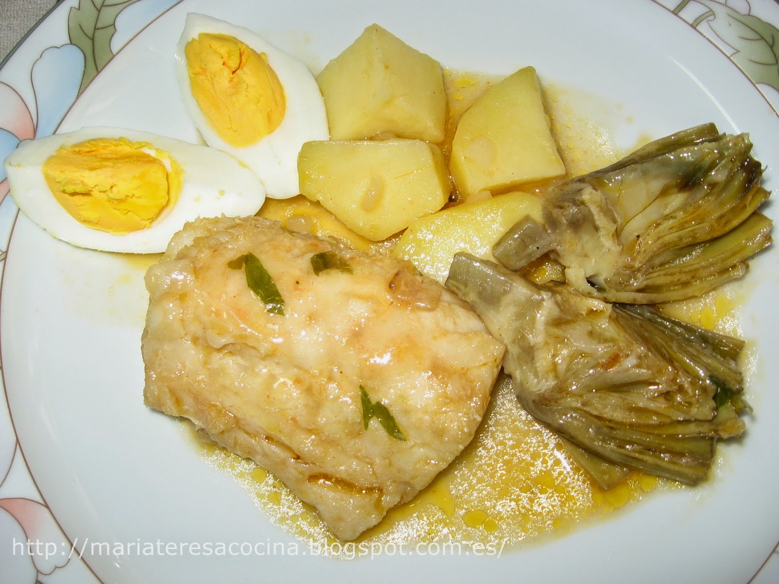 La casa de Lalaina BACALAO CON PATATAS, ALCACHOFAS Y HUEVO DURO.