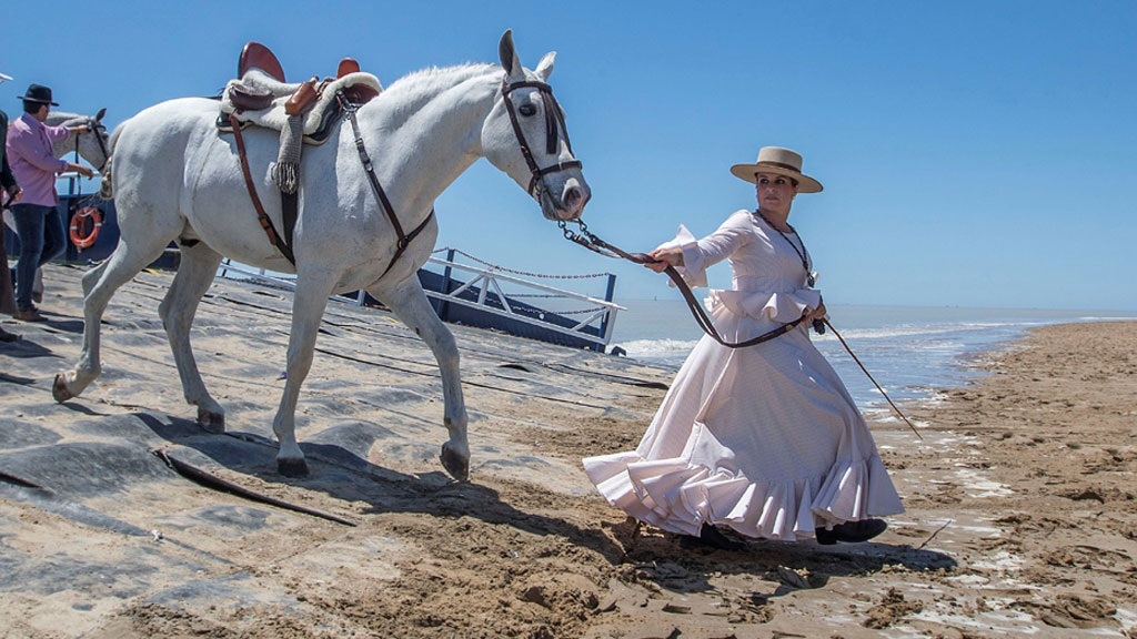 Interminables cortejos de carrozas entoldadas y repletas de flores se encuentran en la aldea del Rocío. La mayor peregrinación de España expresa el desenfreno más espectacular de colores y alegría. Lo más típico es hacer el recorrido a caballo, en carreta o a pie, a través de las marismas y durmiendo en pleno campo.