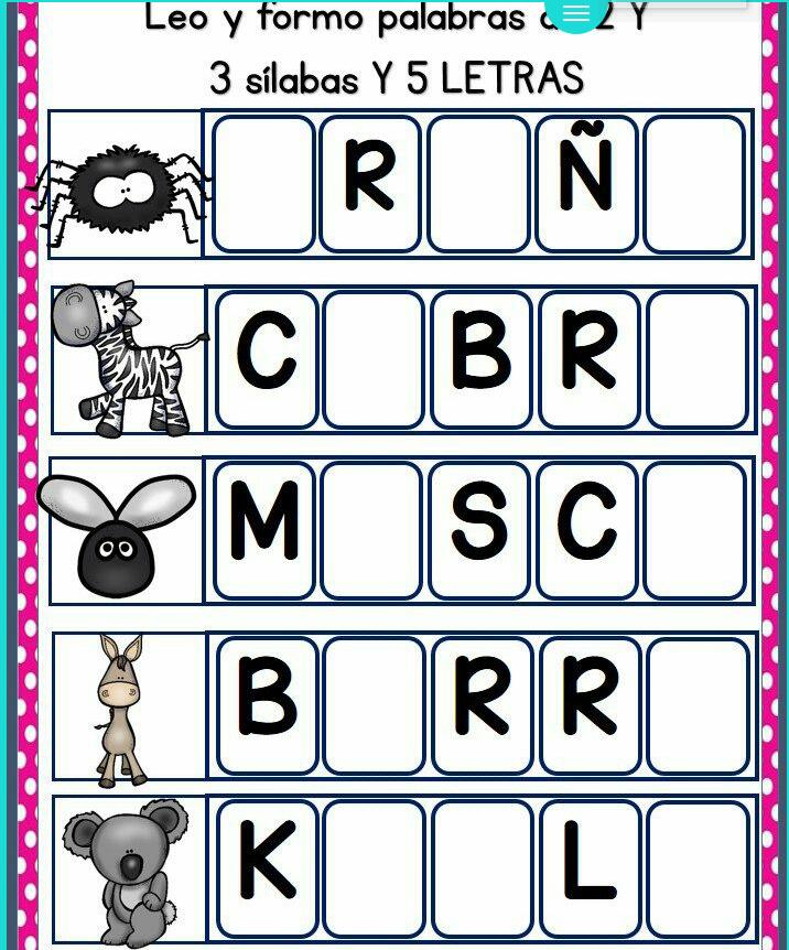 Lectoescritura Completa la palabra con la sílaba inicial Lectoescritura, Forma palabras