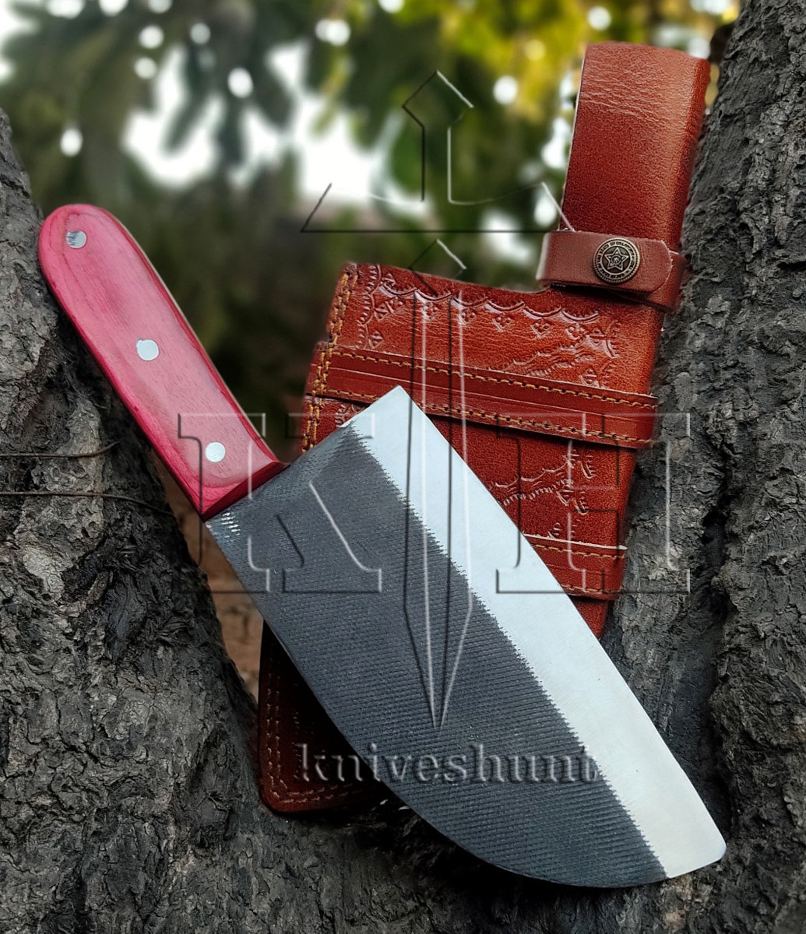 Tipos de cuchillos hechos a mano. Se utilizan tanto para la caza como para la recolección. Tipos: Cuchillo de campamento. El cuchillo de campamento hecho a mano es una herramienta versátil diseñada de tal manera que puede realizar la mayoría de las tareas en campamentos en el bosque.