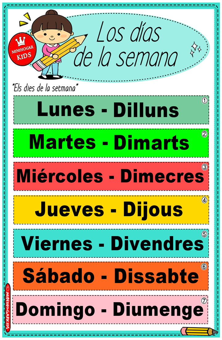 En esta lección veremos como se dicen los días de la semana en catalán, o sea els dies de la setmana. Los días de la semana en catalán. Castellano.
