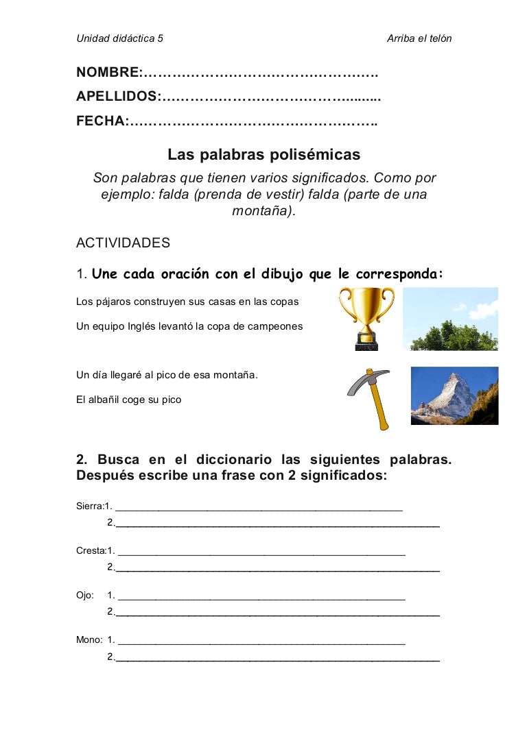 Palabras polisemicas conjunto de actividades _page0001 Orientación Andújar Recursos Educativos
