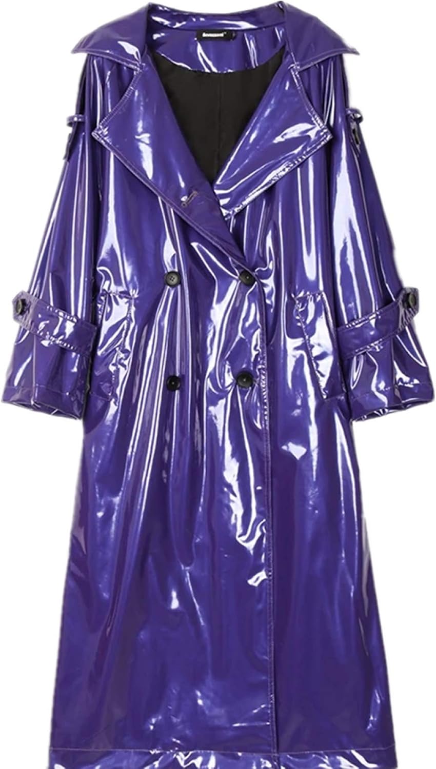 Aututer Gabardina Larga Impermeable de Charol Negro para Mujer Abrigo de Cuero de Gran tamaño