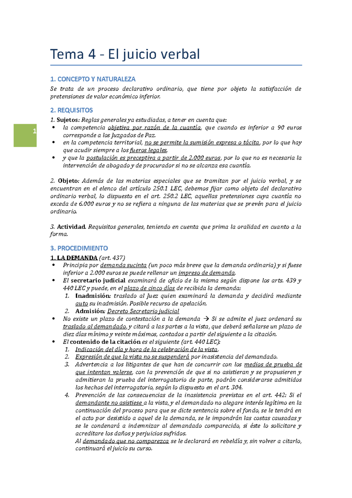 TEMA 4 EL Juicio Verbal. docx 1 Tema 4 El juicio verbal 1. CONCEPTO Y NATURALEZA Se trata de