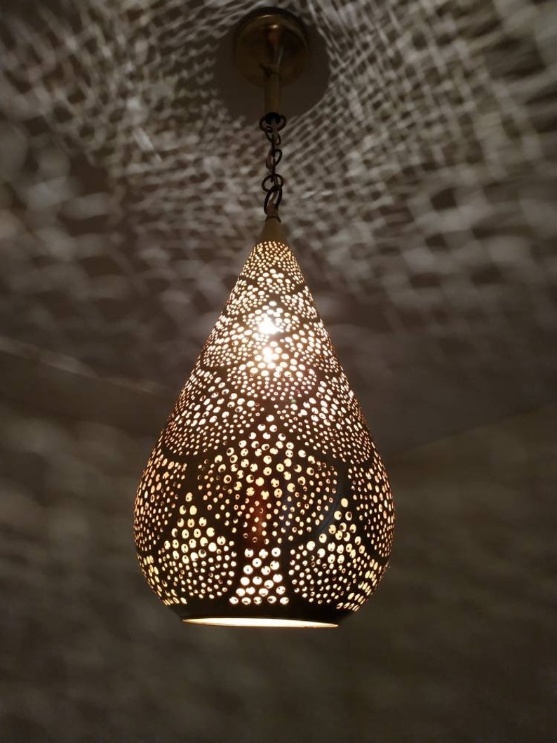 Lámpara marroquí colgante latón abierto gota luz de techo Etsy España