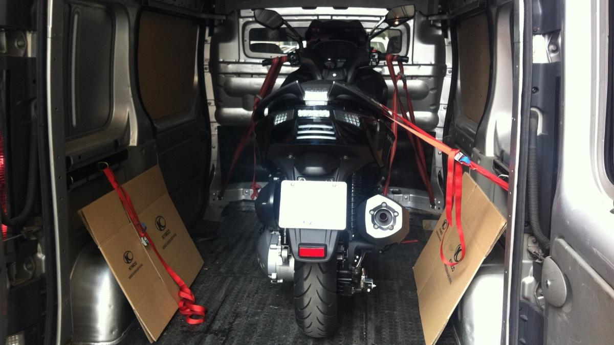 Otra manera de transportar la moto es metiéndola directamente en el interior de otro vehículo, como por ejemplo un furgón o una furgoneta. Distinguimos entre furgón y furgoneta para diferenciar lo que suele ser un vehículo industrial de una furgoneta que en muchos casos suele ser de recreo.