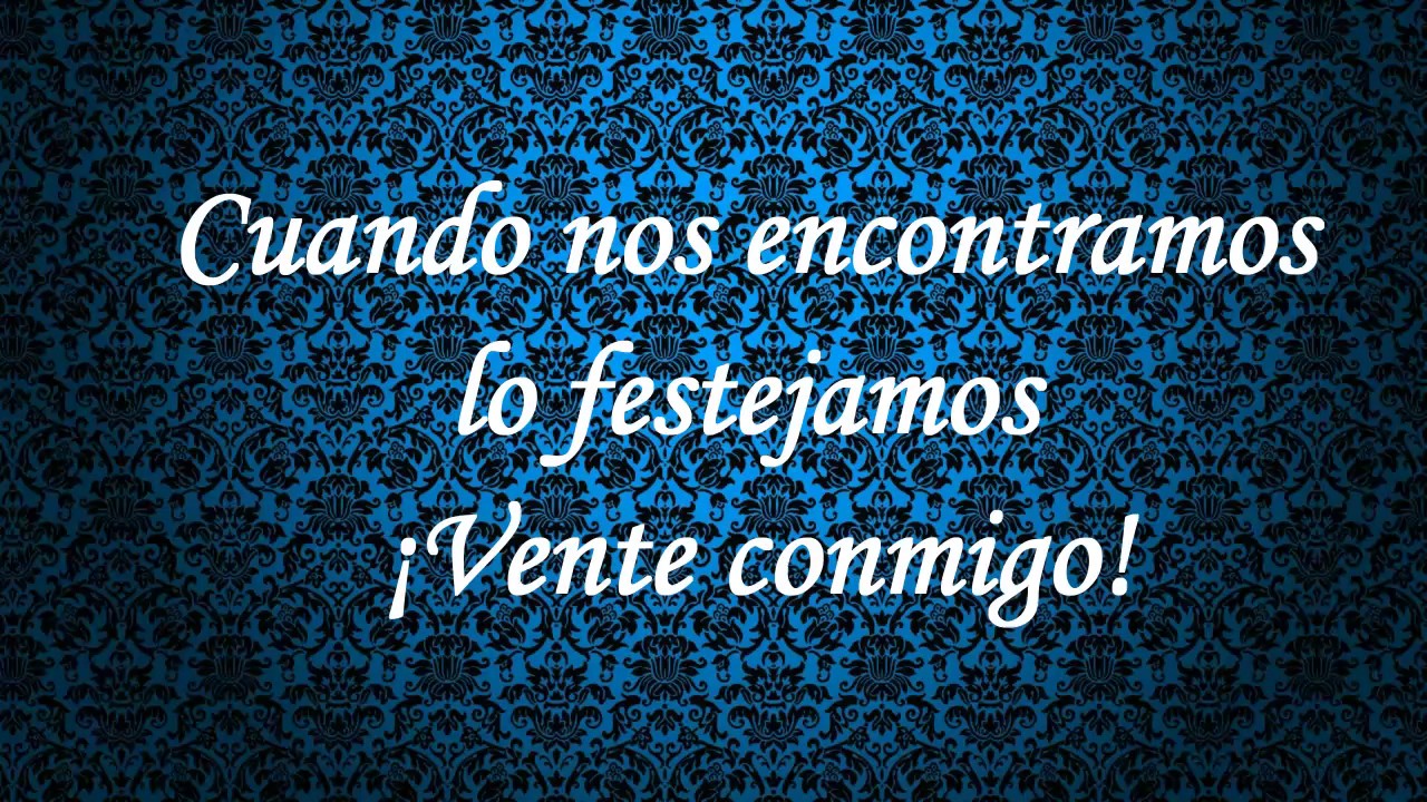 Y nunca se olvidan Hoy regreso hasta aquí Y sin querer me cruzo contigo Me da gusto decirlo En esta tierra vive un amigo Tú ya sabes que sí que en ti y en mí Hay un parecido Aunque a veces por ir y venir por ahí No somos los mismos Los amigos así Que no se ven, quizás muy seguido Cuando nos encontramos lo festejamos, Vente conmigo Nuestra vi.