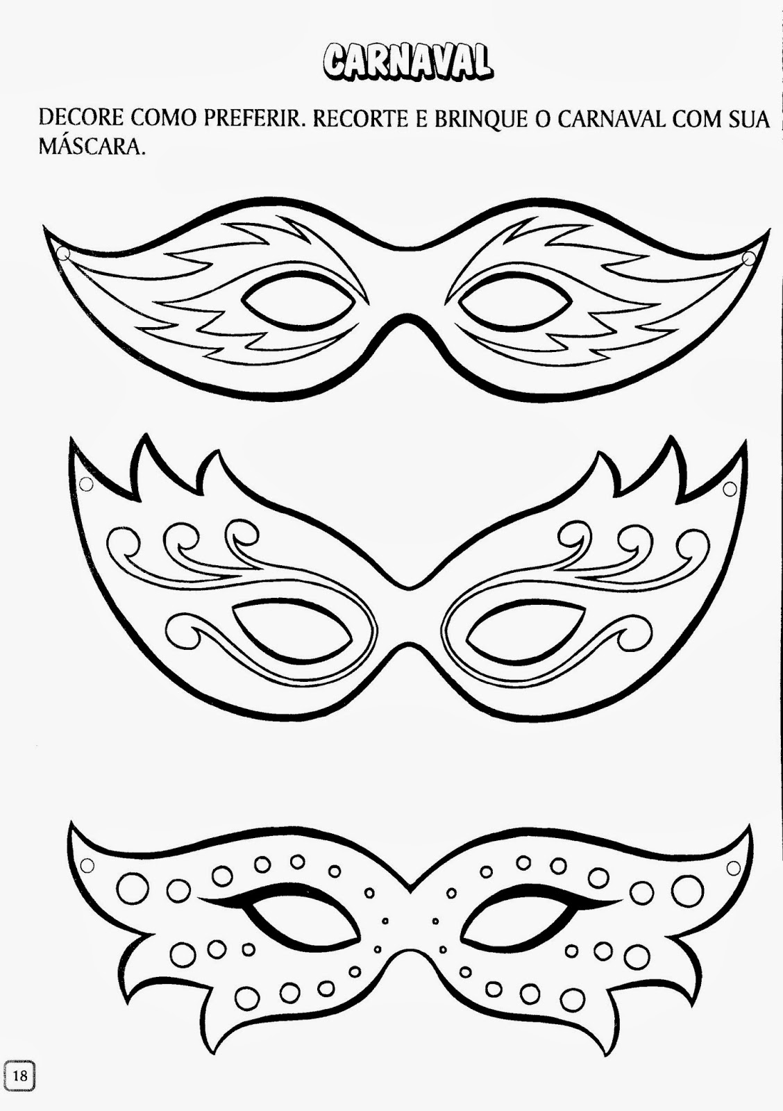 mascaras de carnaval para colorir Escola Educação