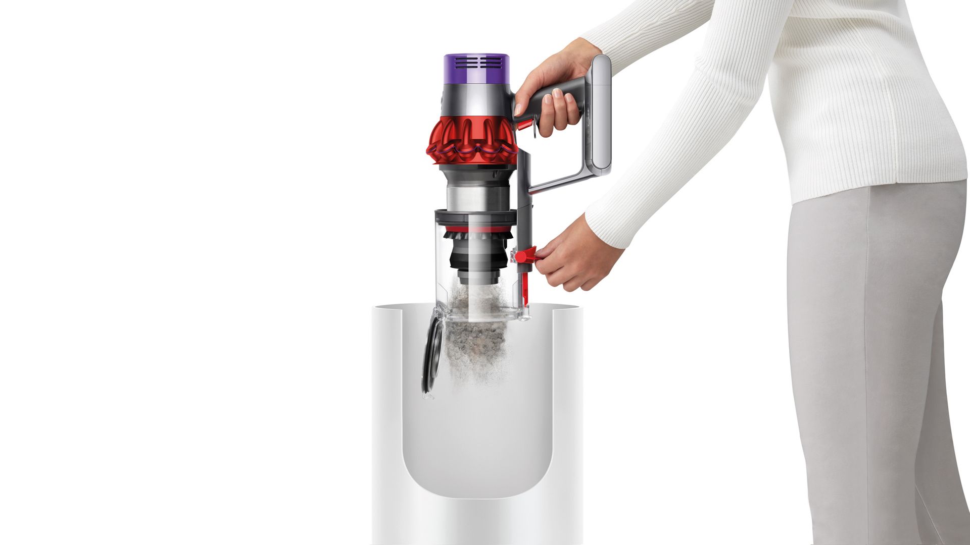 If your Dyson Cyclone V10™ vacuum cleaner features the bigger bin size then continue your support journey here. Please see image above if you are still not sure. Explore machine support Dyson Cyclone V10™ cordless vacuum cleaner with smaller bin. The Dyson Cyclone V10™ vacuum cleaner is engineered in two bin sizes..