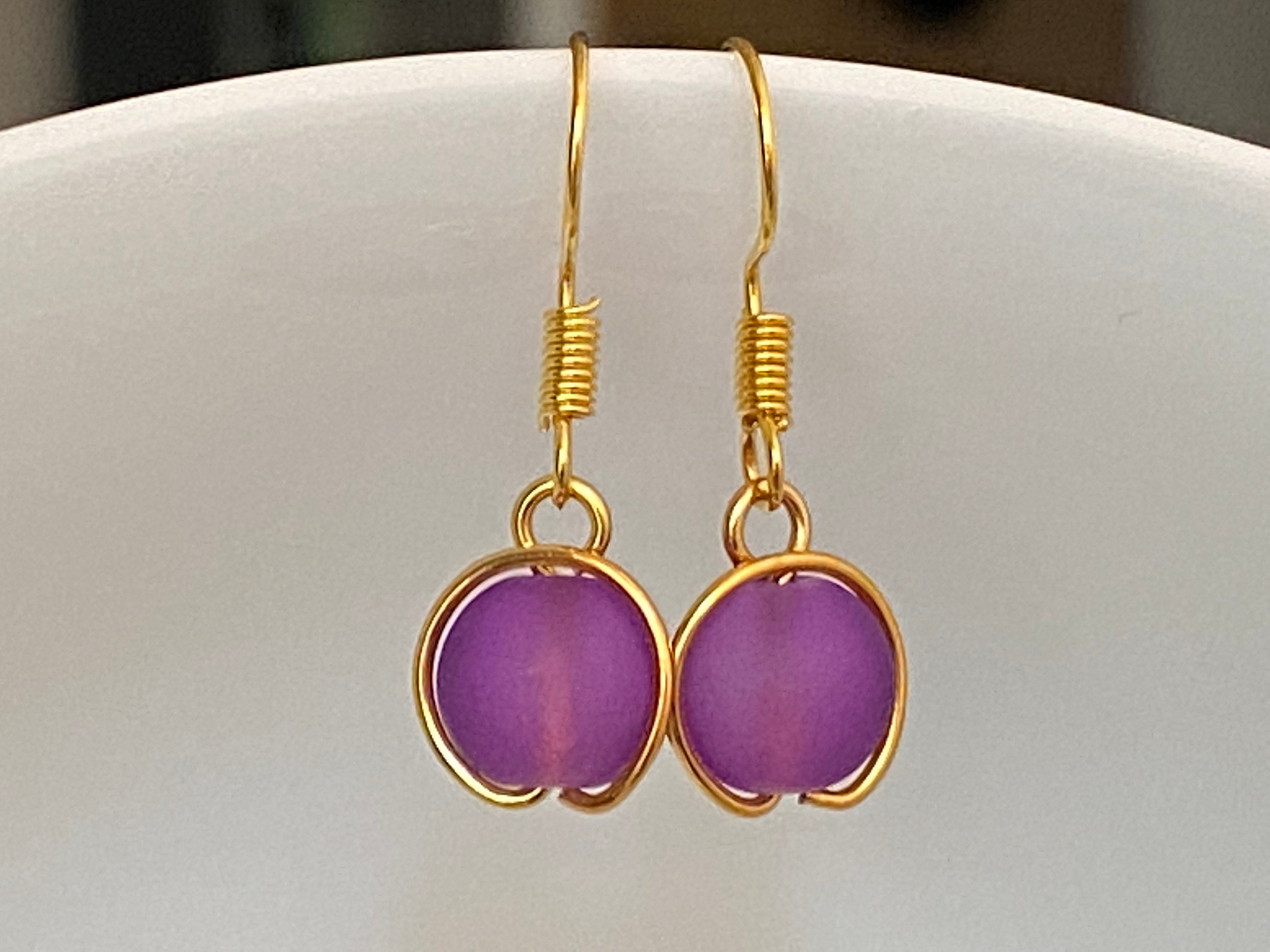 Pendientes sencillos en tono morado hechos a mao en Valencia Brunei