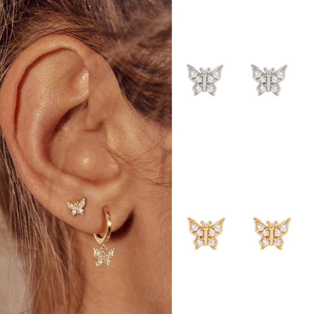 Pendientes pequeños mariposa gema 925 plata de ley pequeño Etsy