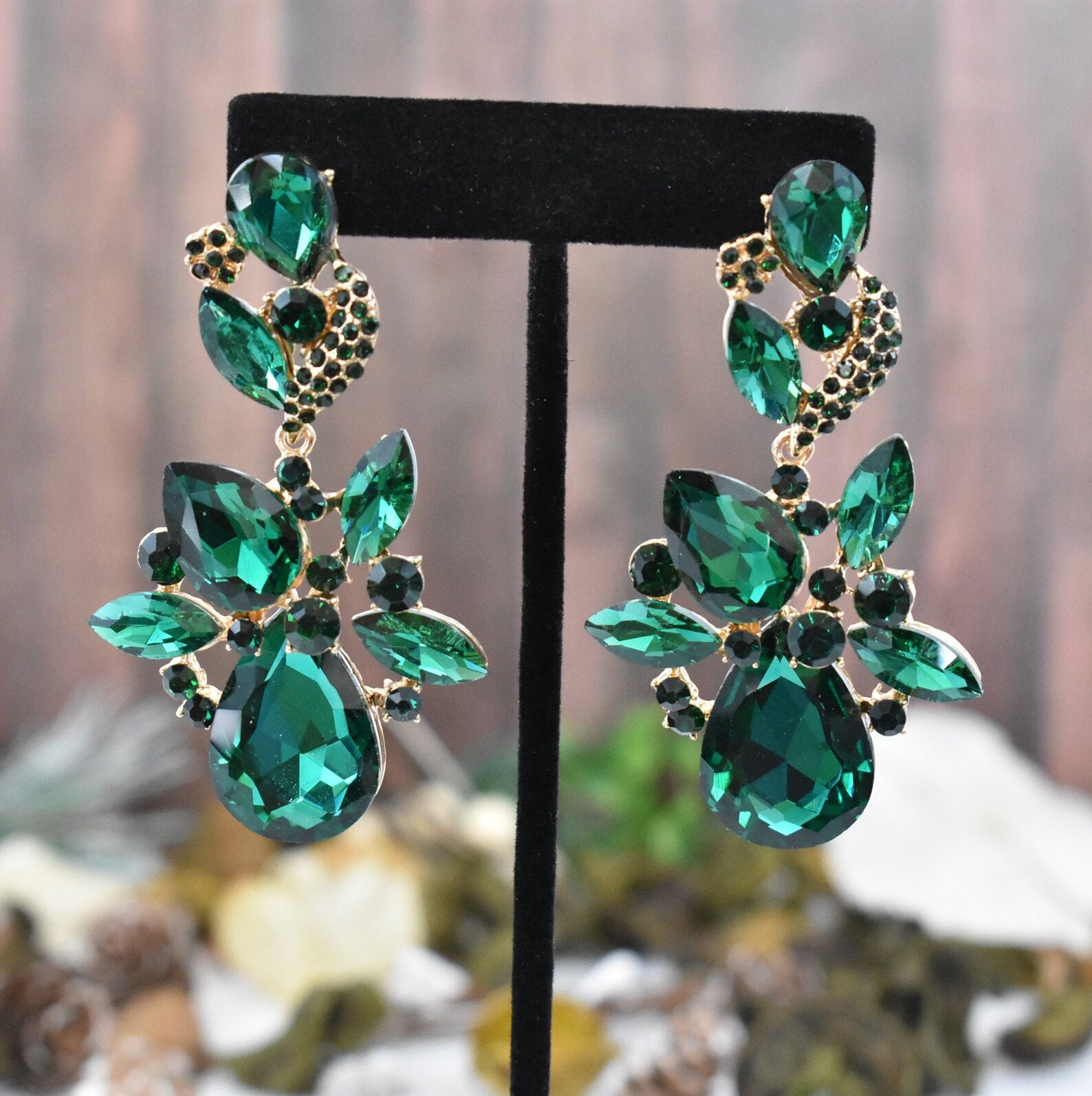 Pendientes de lágrima verde esmeralda pendientes de cristal Etsy