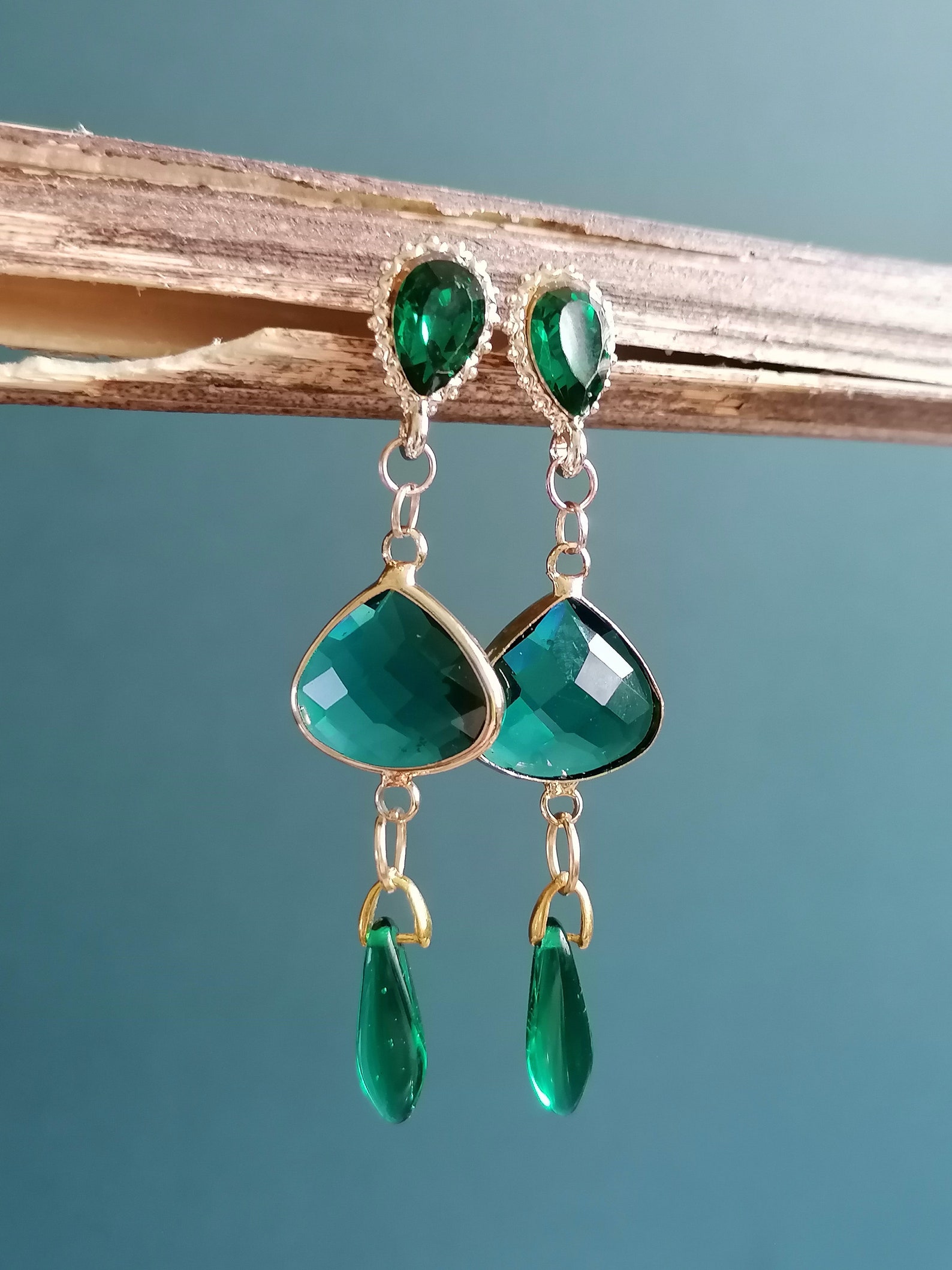 Pendientes largos lágrima verde esmeralda ideales para lucir en bodas y fiestas