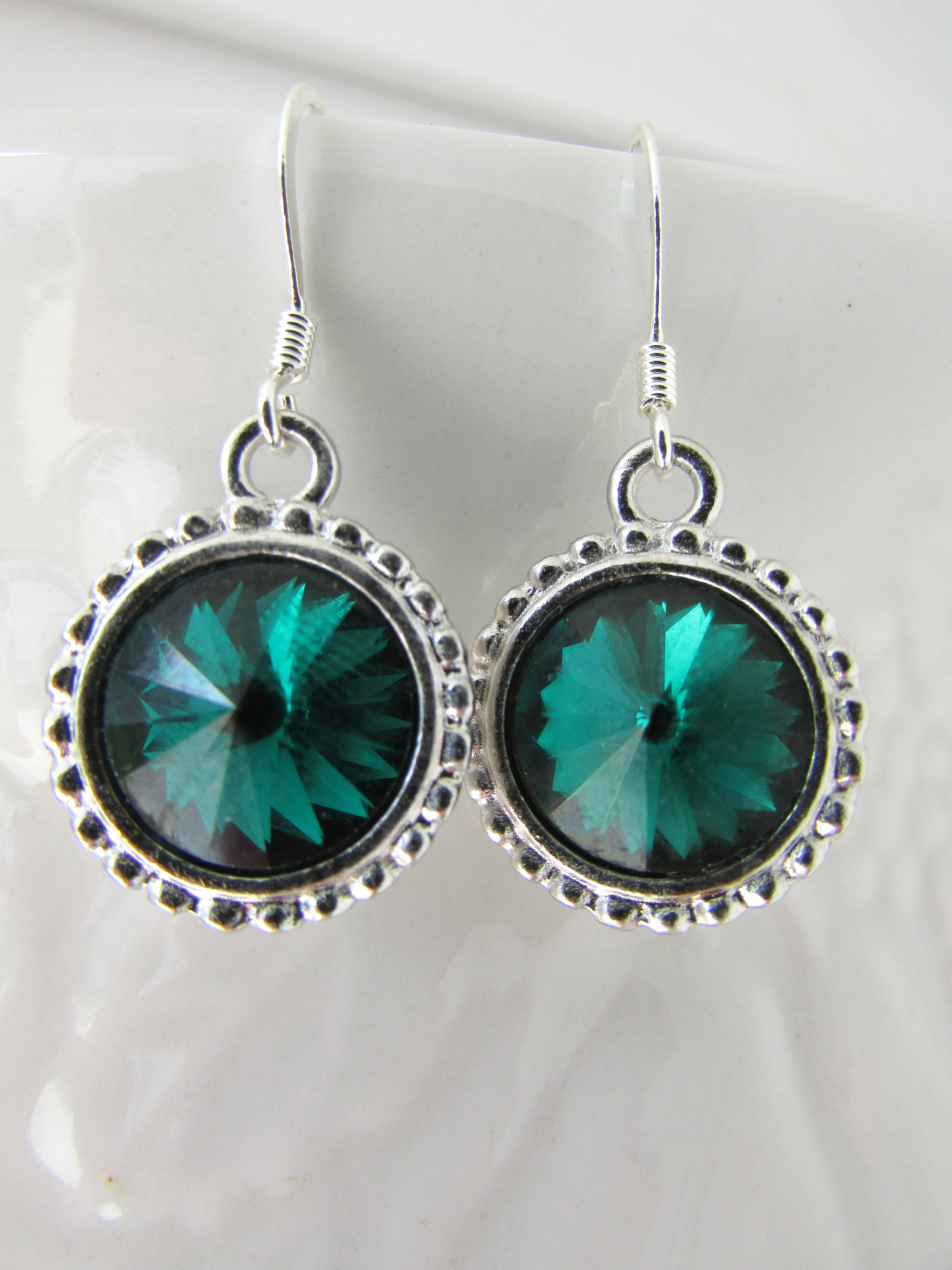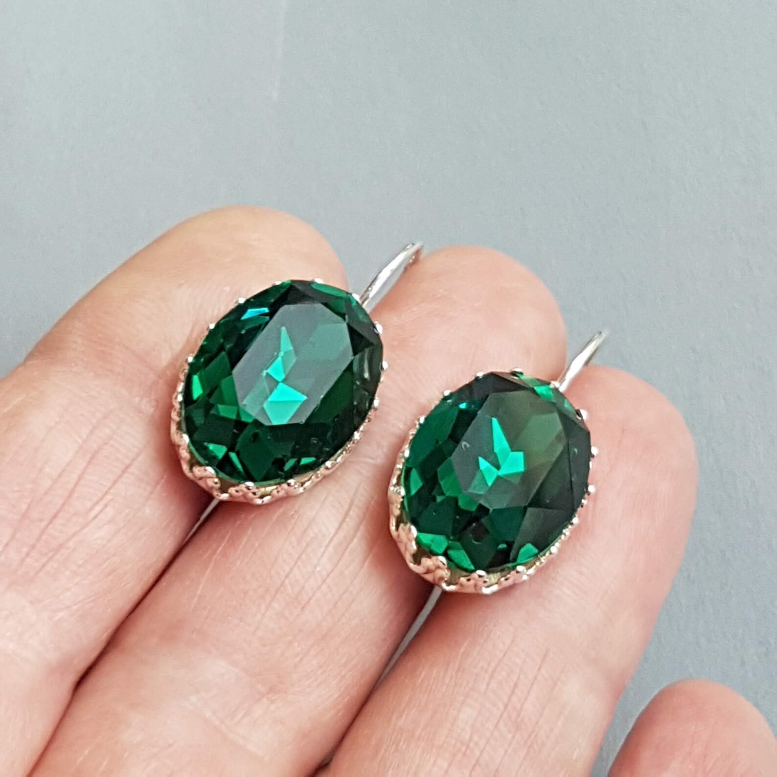 Pendientes verde esmeralda plata Swarovski pendientes verde Etsy