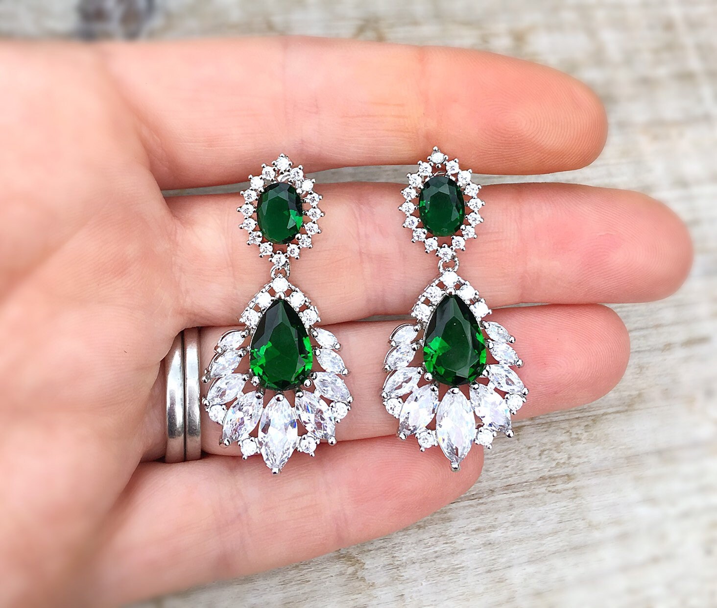 Pendientes verdes esmeralda pendientes de novia joyas de Etsy