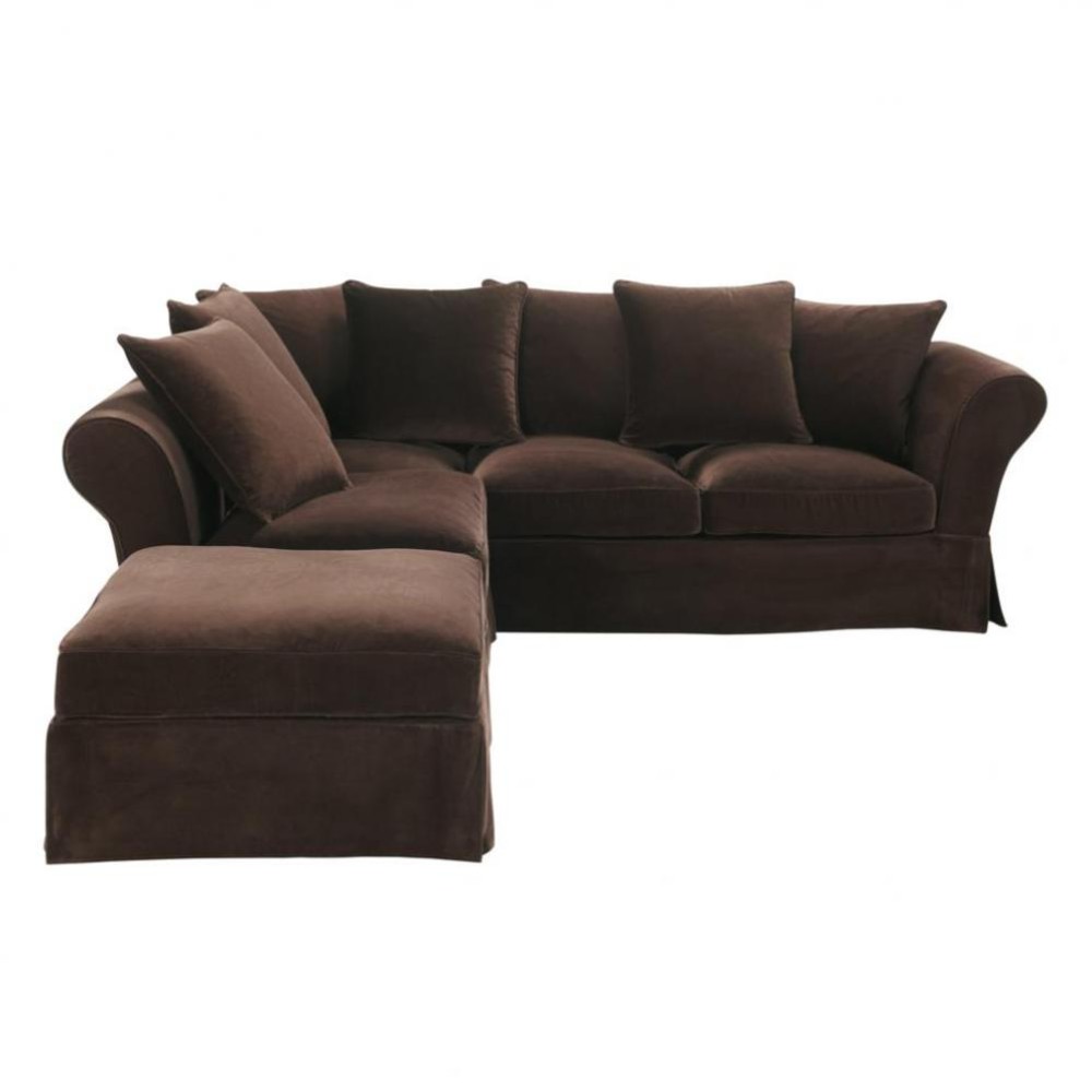 Sofá de esquina 6 plazas fijo terciopelo chocolate Roma Roma Maisons du Monde