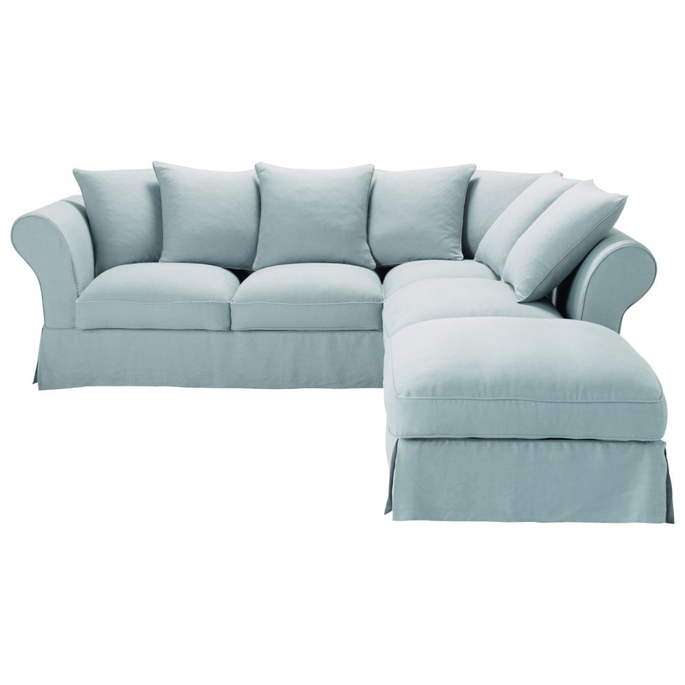 Sofá de esquina fijo 6 plazas lino azul agrisado Roma Roma Maisons du Monde
