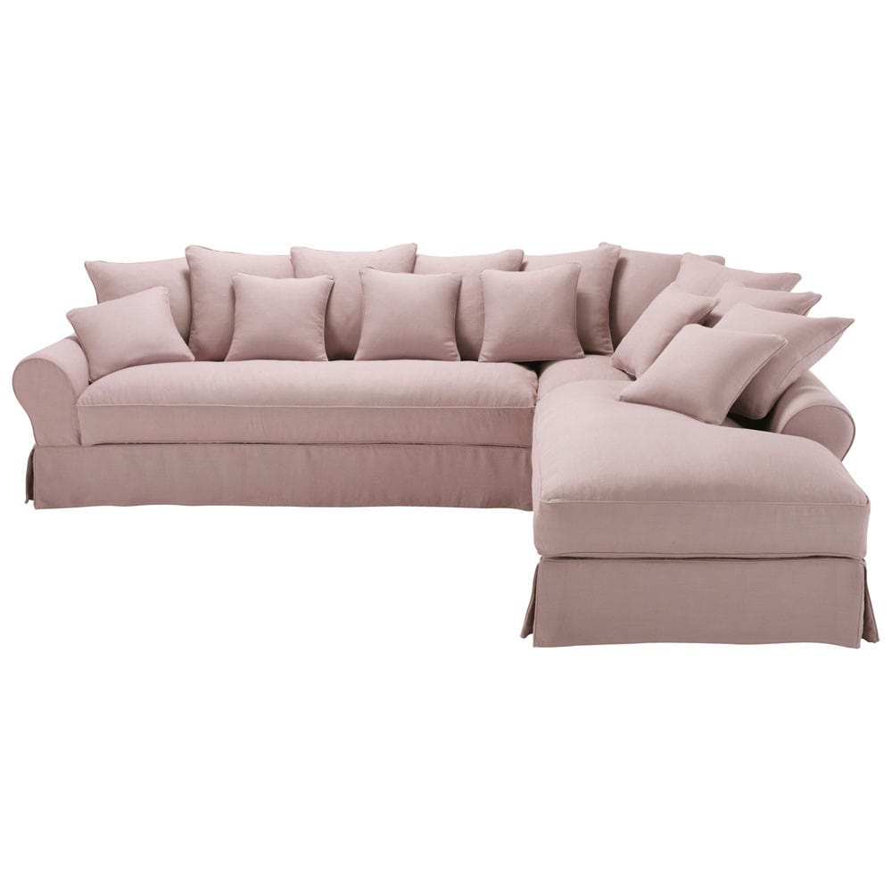 Sofá esquinero de 6 plazas de lino malva Bastide Maisons du Monde