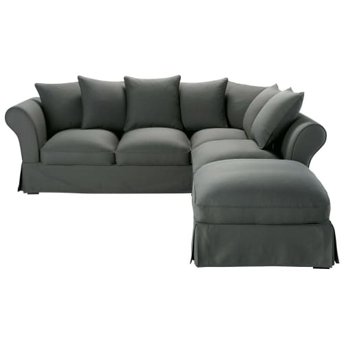Sofá esquinero de 6 plazas de algodón gris pizarra Roma Maisons du Monde