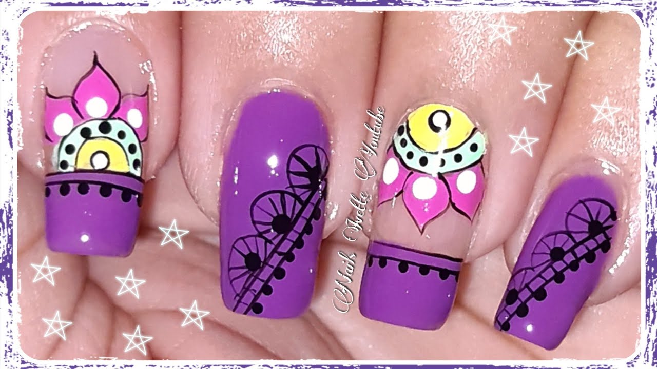 Uñas decoradas en tono morados/decoración de uñas mandala en color morado/uñas paso a paso YouTube